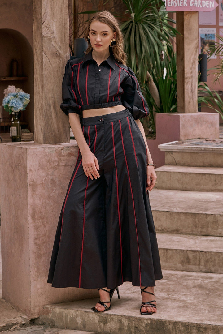 - Black Cotton Top and Pant Set with Pipe Embellishment