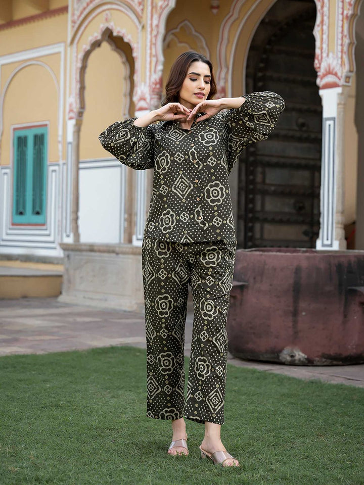 Black Floral Print Pure Cotton Straight Co-Ord (Set of 2)