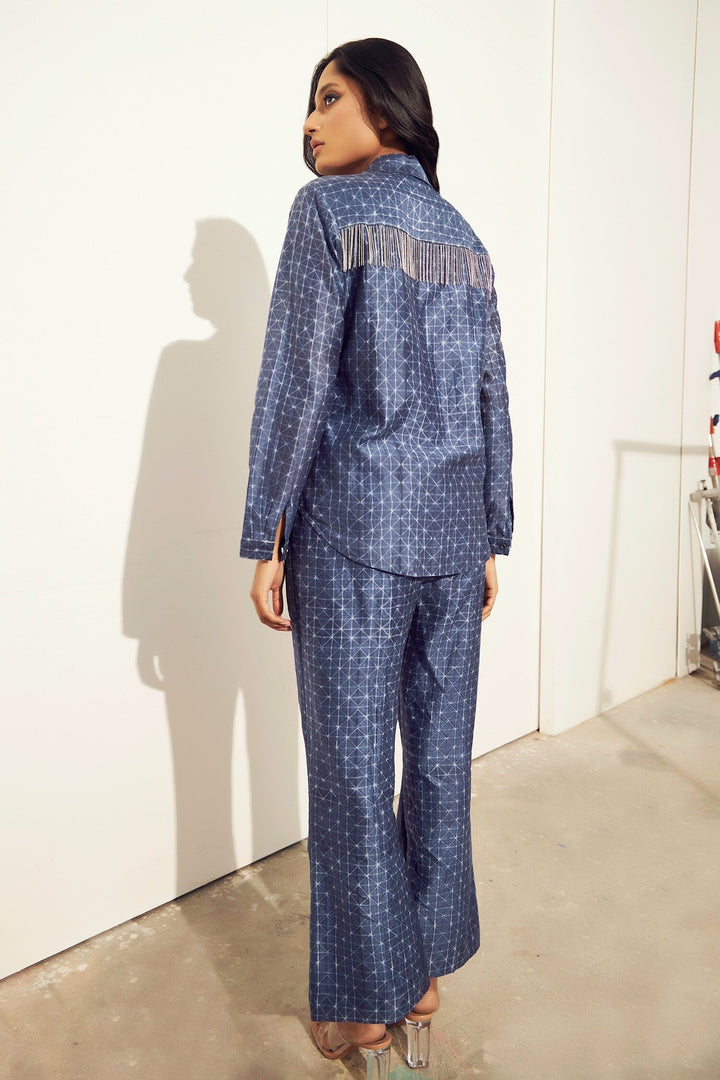 - Blue Chanderi Shirt and Pant Set with Chain Detail and Indian Aesthetic