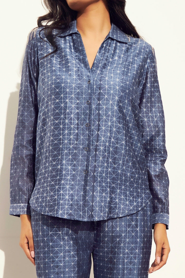 Blue Chanderi Cotton Silk Tie And Dye Shibori Shirt Pattern & Pant Set