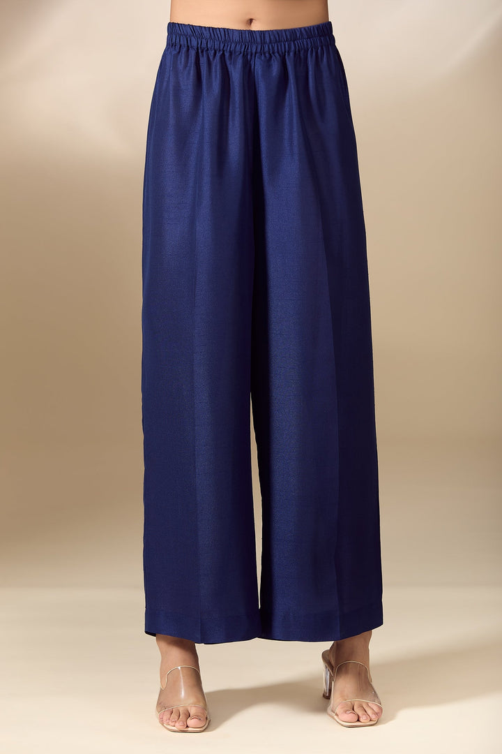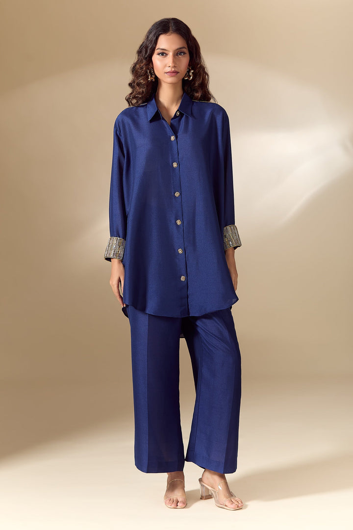 - Blue Silk & Silk Satin Shirt and Trouser Set