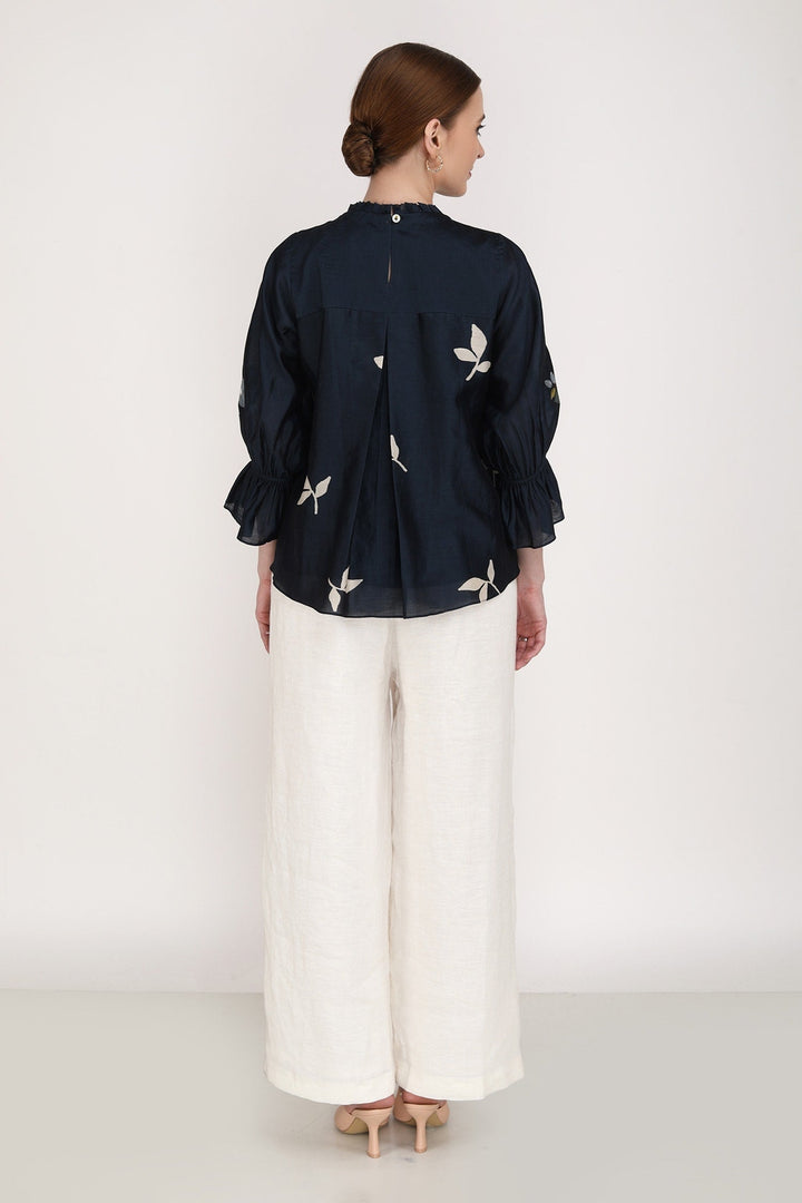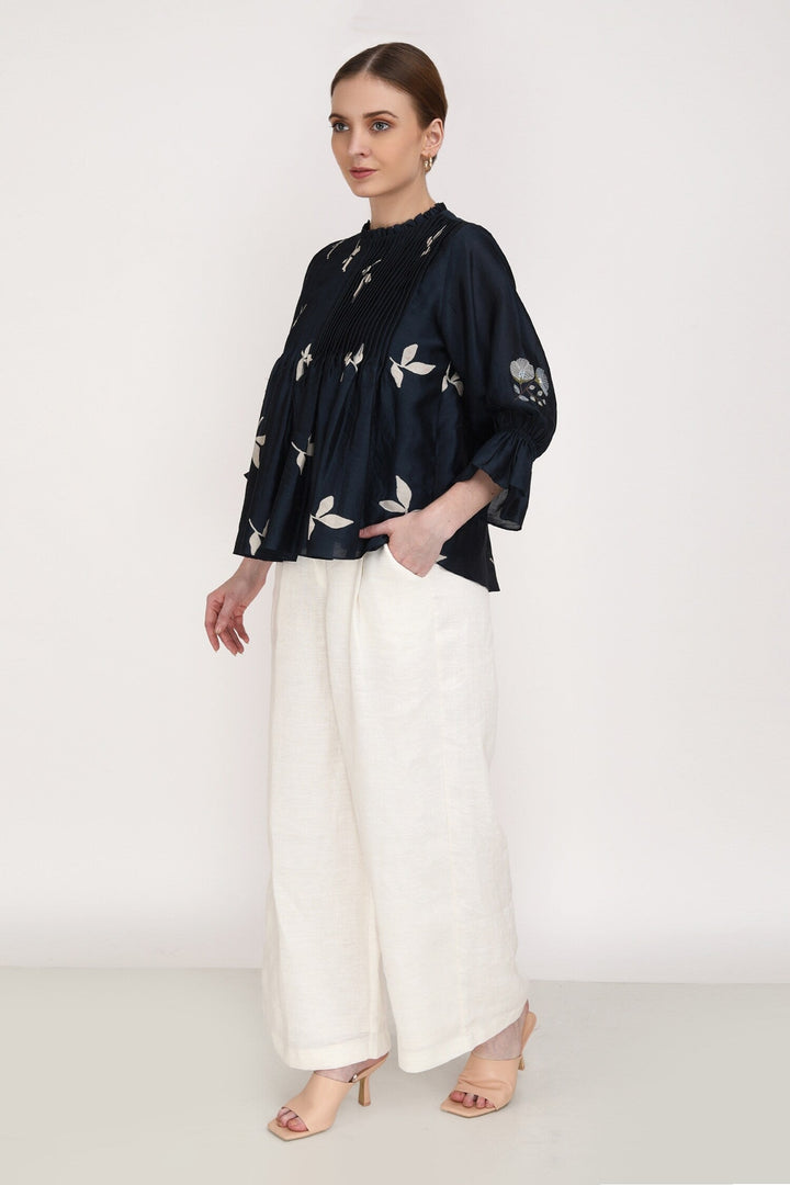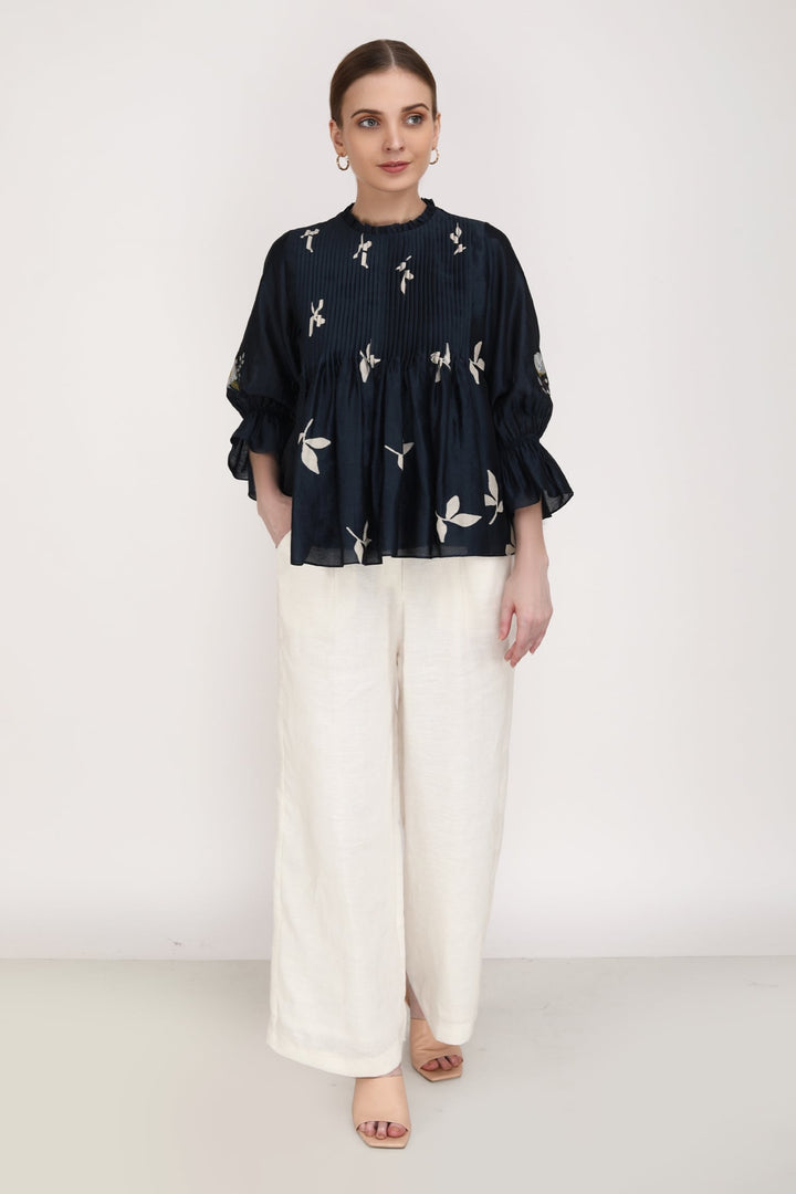 - Indigo Blue Linen & Silk Chanderi Shirt and Pant Set