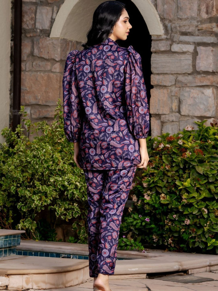 Dark Purple Printed Shirt and Pants (Set of 2)