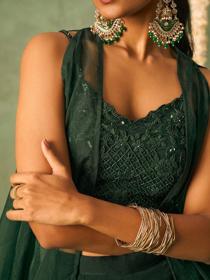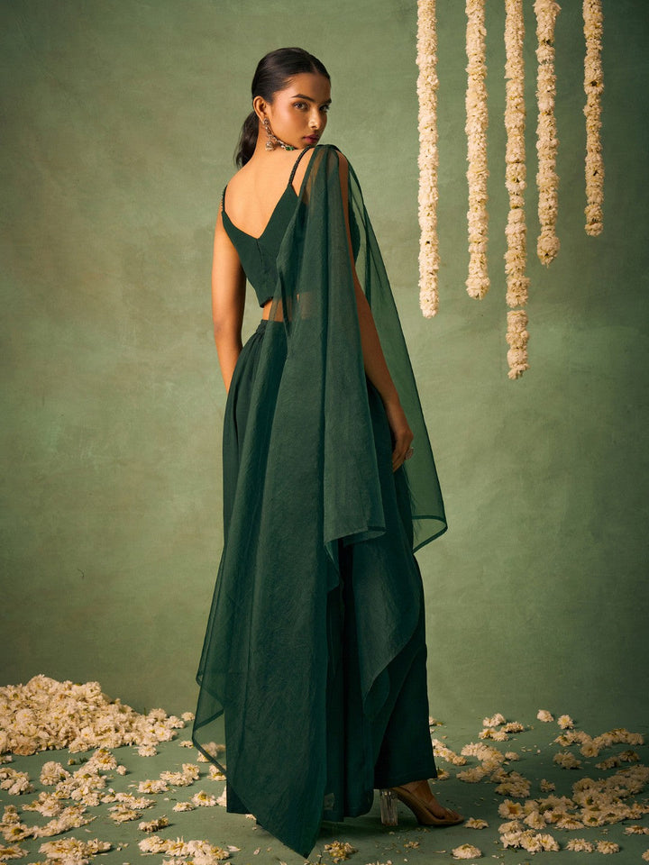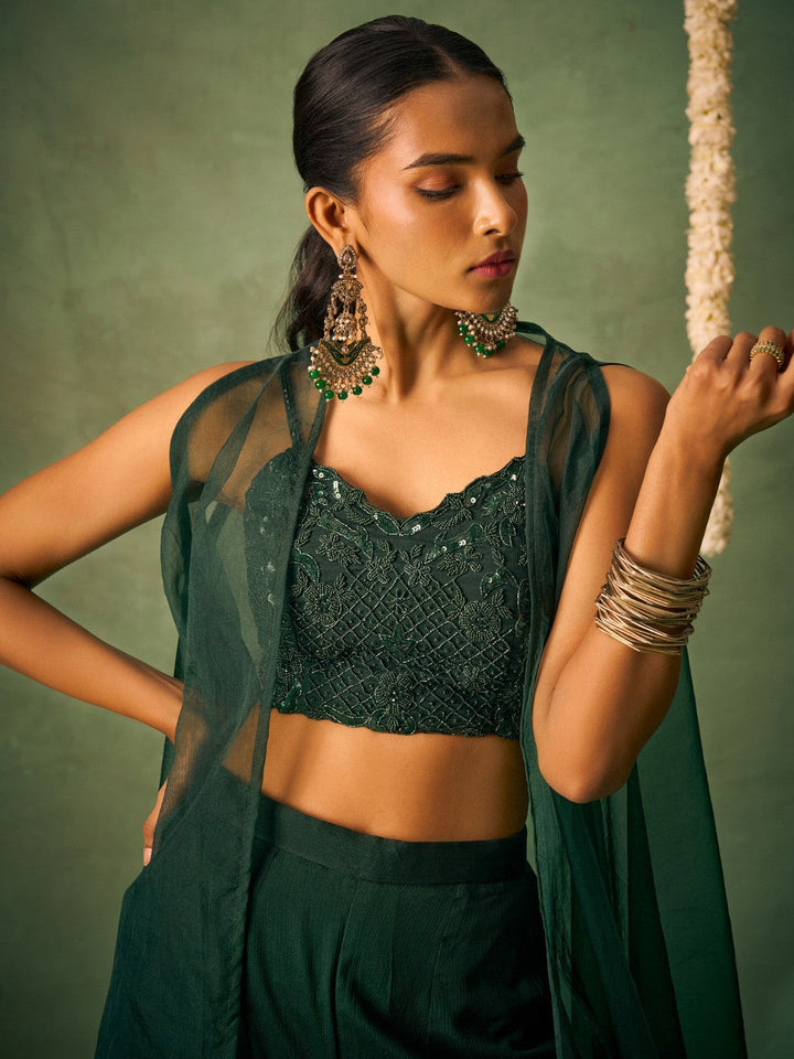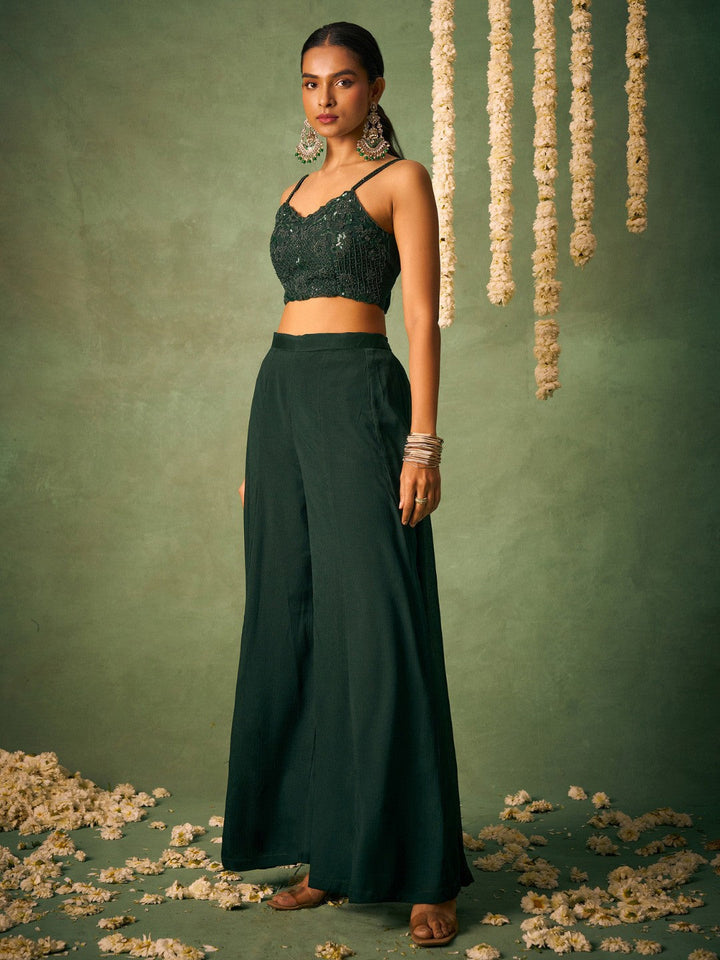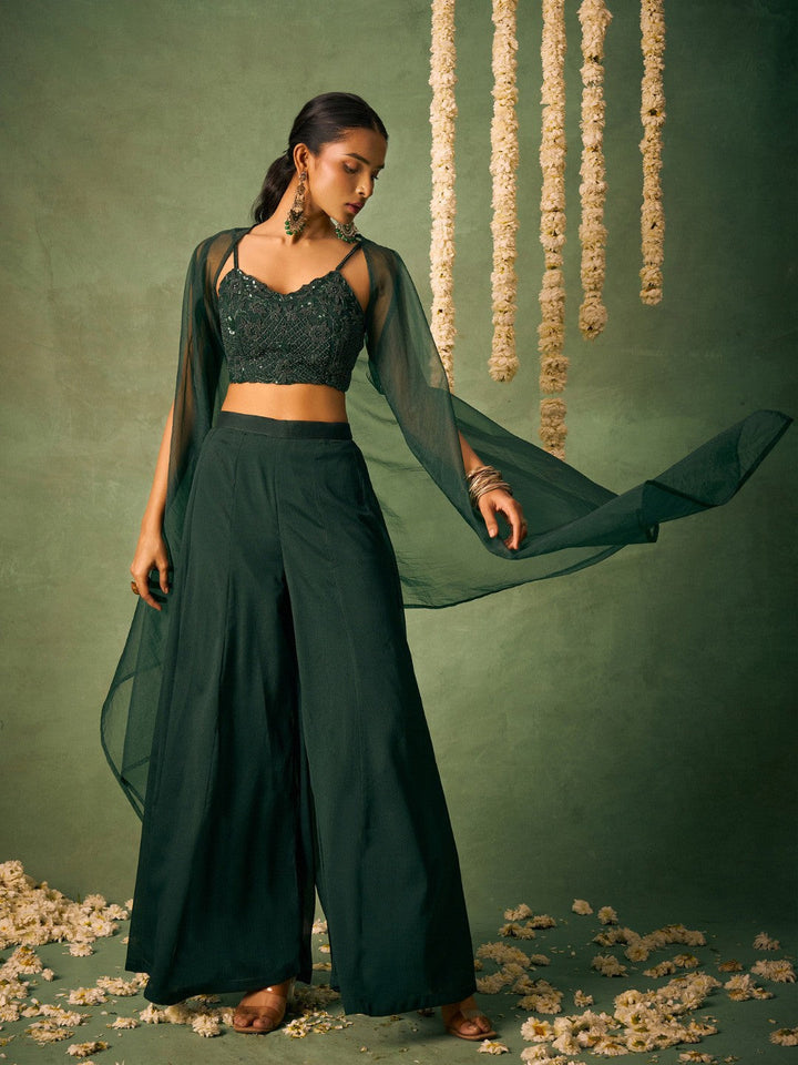 Embroidered Shoulder Straps Top & Palazzos With Shrug