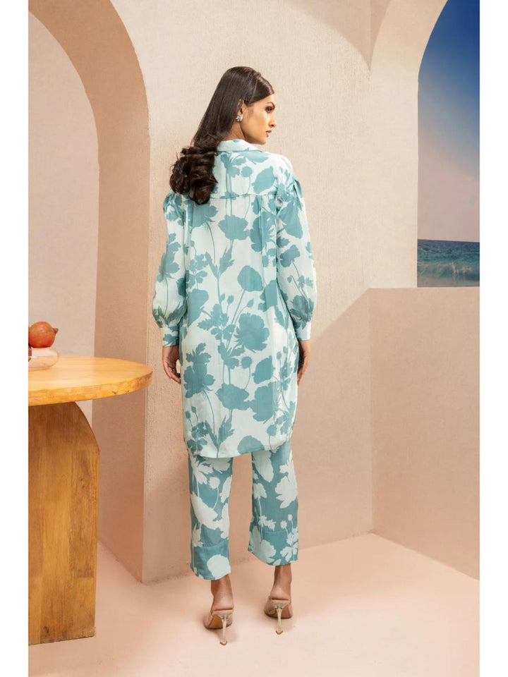 Emily Blue Floral Printed Crepe Co-Ord (Set of 2)