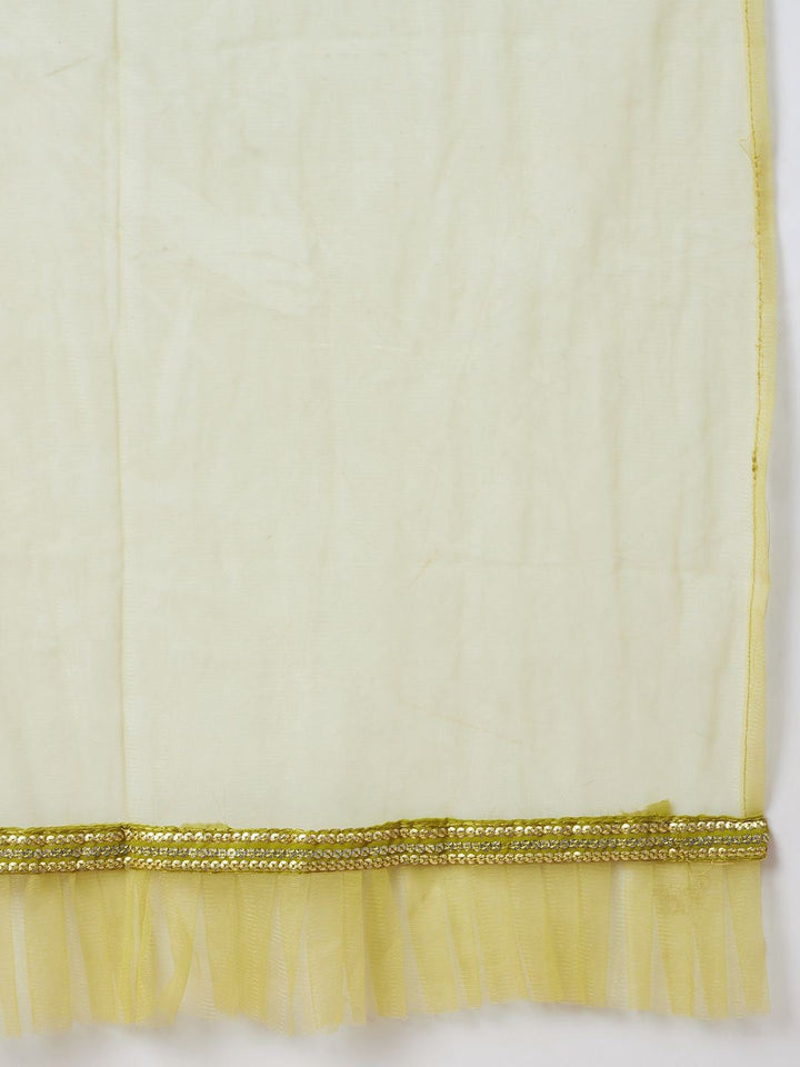 Ethnic Motifs Embroidered Mirror Work V-Neck Crop Top With Palazzo & Dupatta