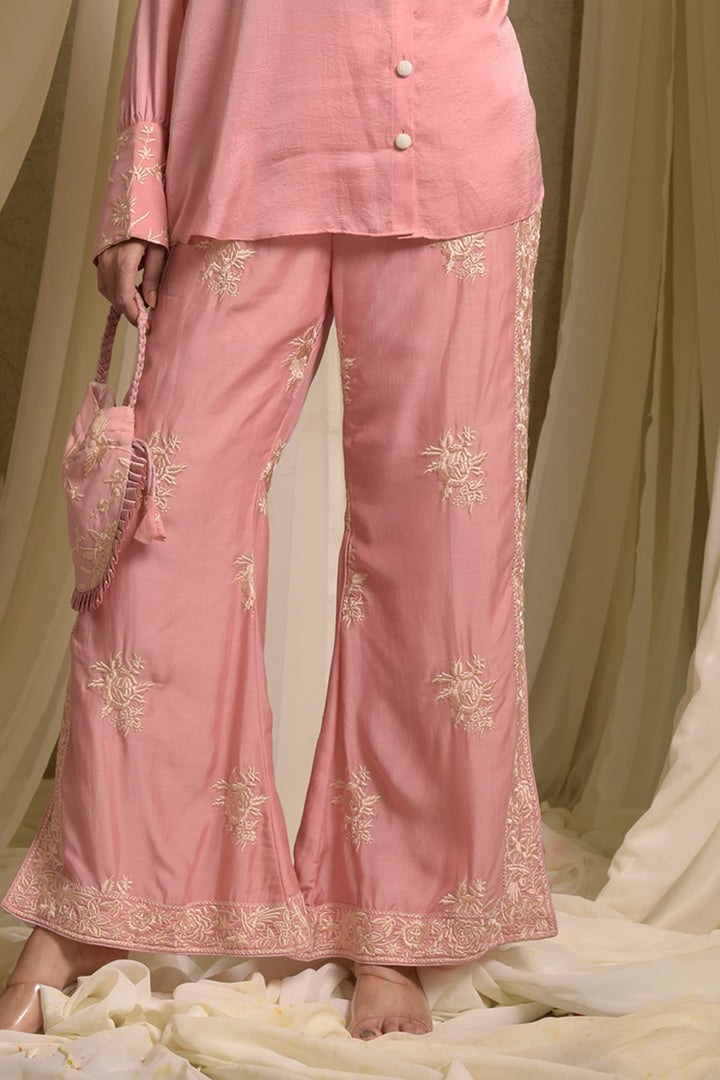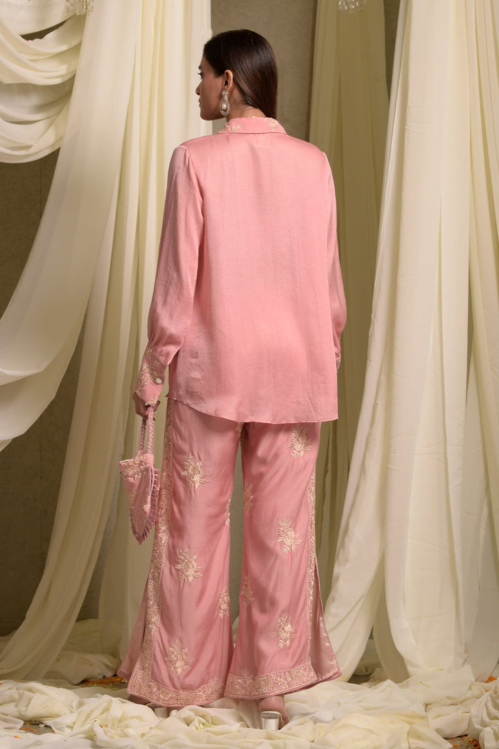 - Pink Georgette Shirt and Pant Set with Gara Embroidery