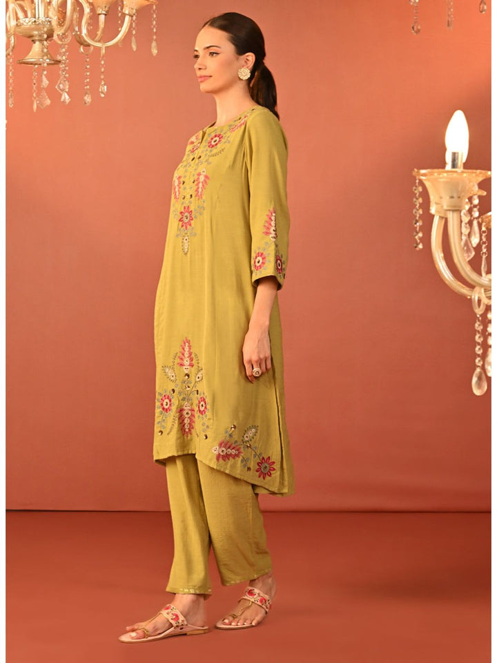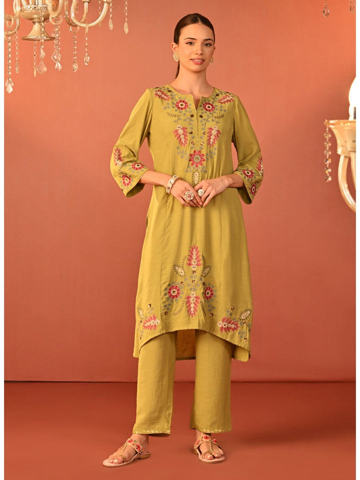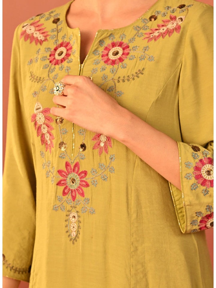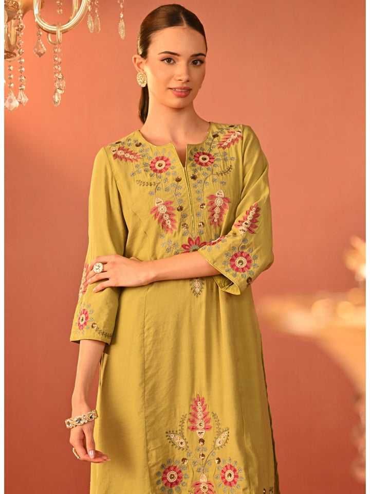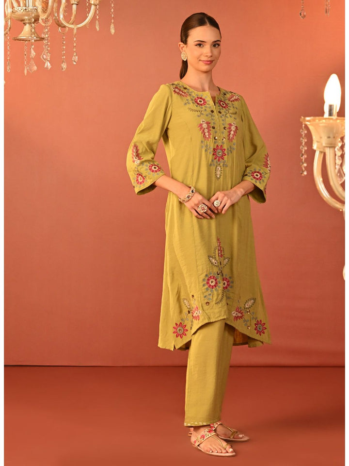 Pista Green Embroidered Cotton Linen Co-Ord (Set of 2)