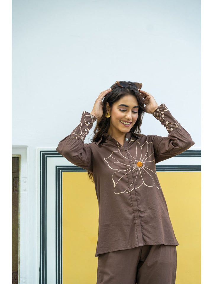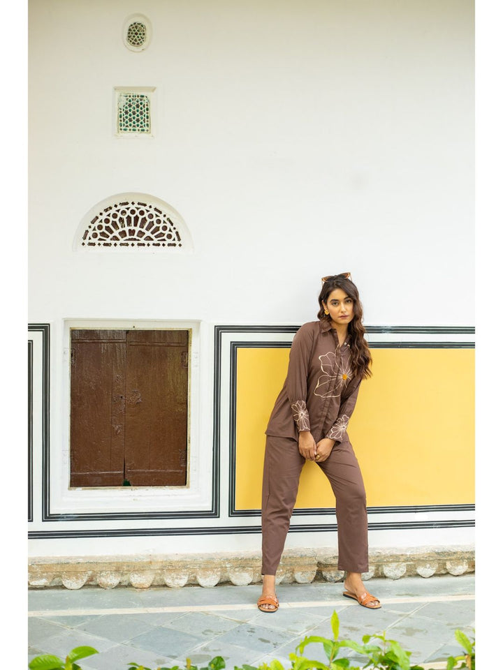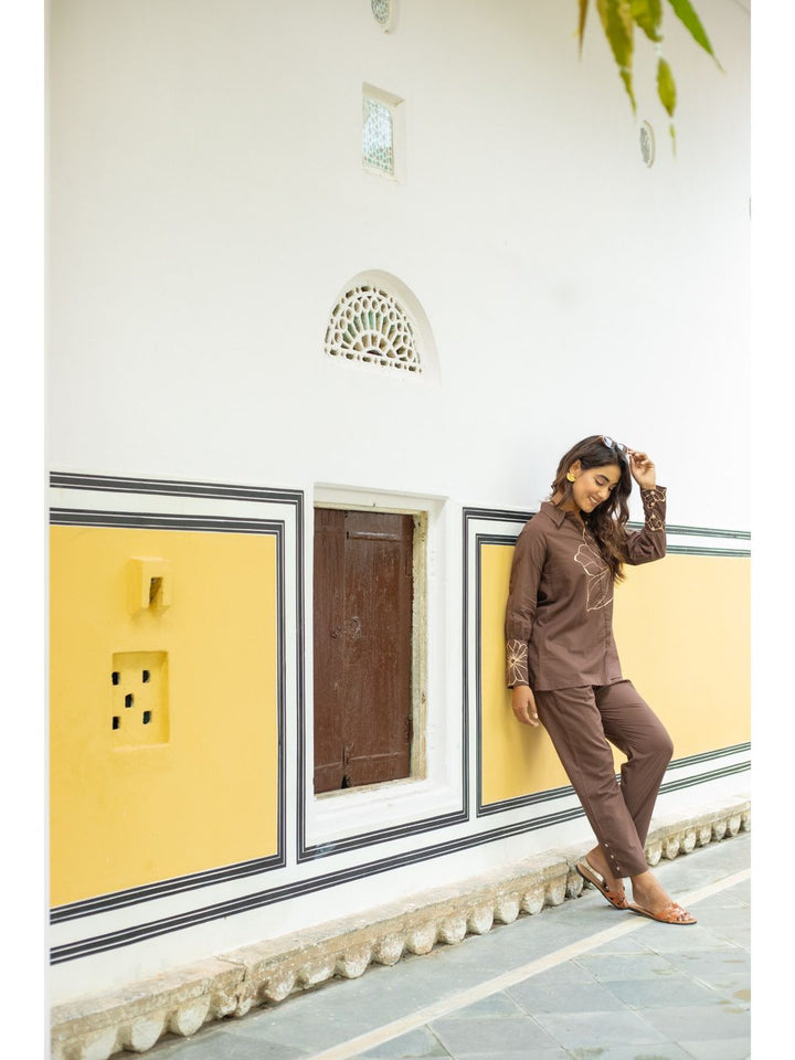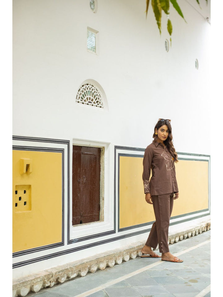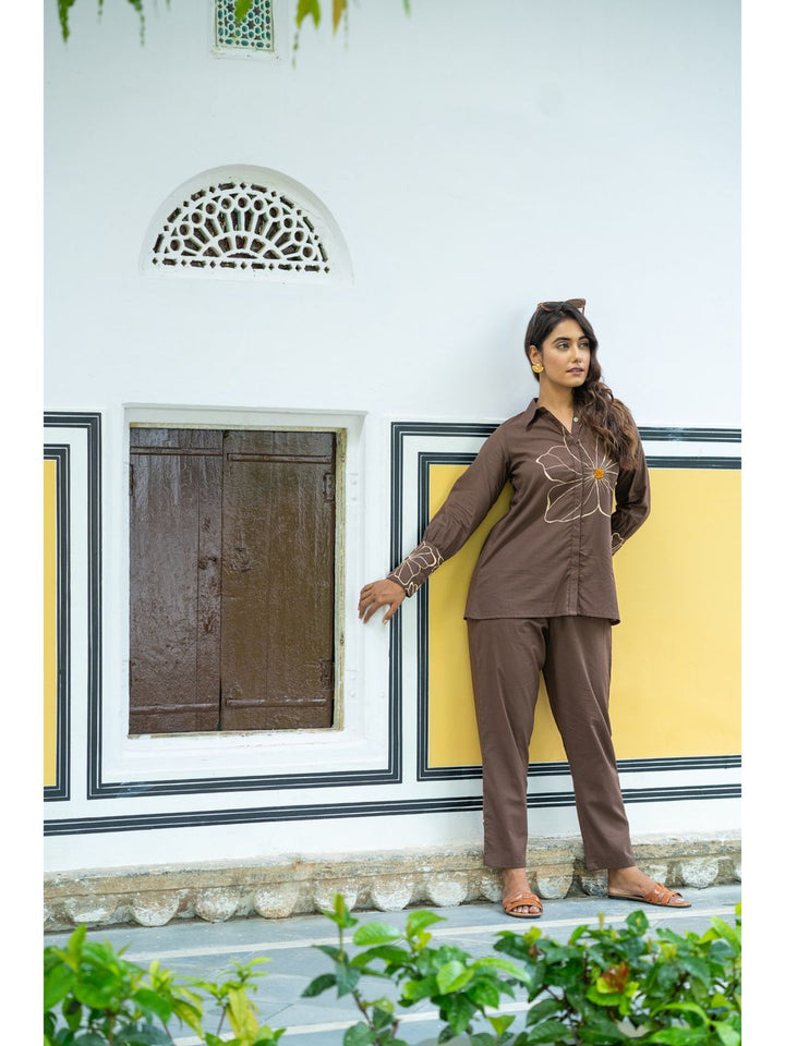 Whimsical Wings Walnut Brown Cotton Co-Ord For Women (Set of 2)