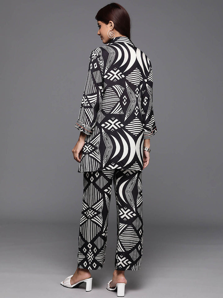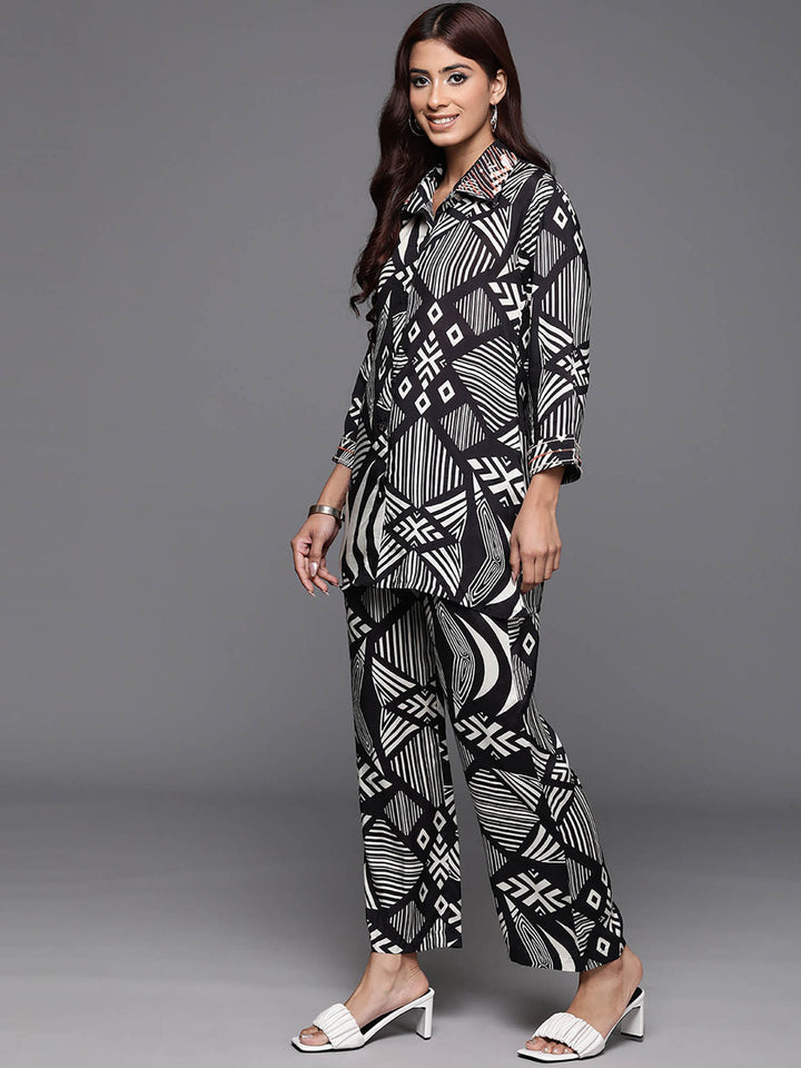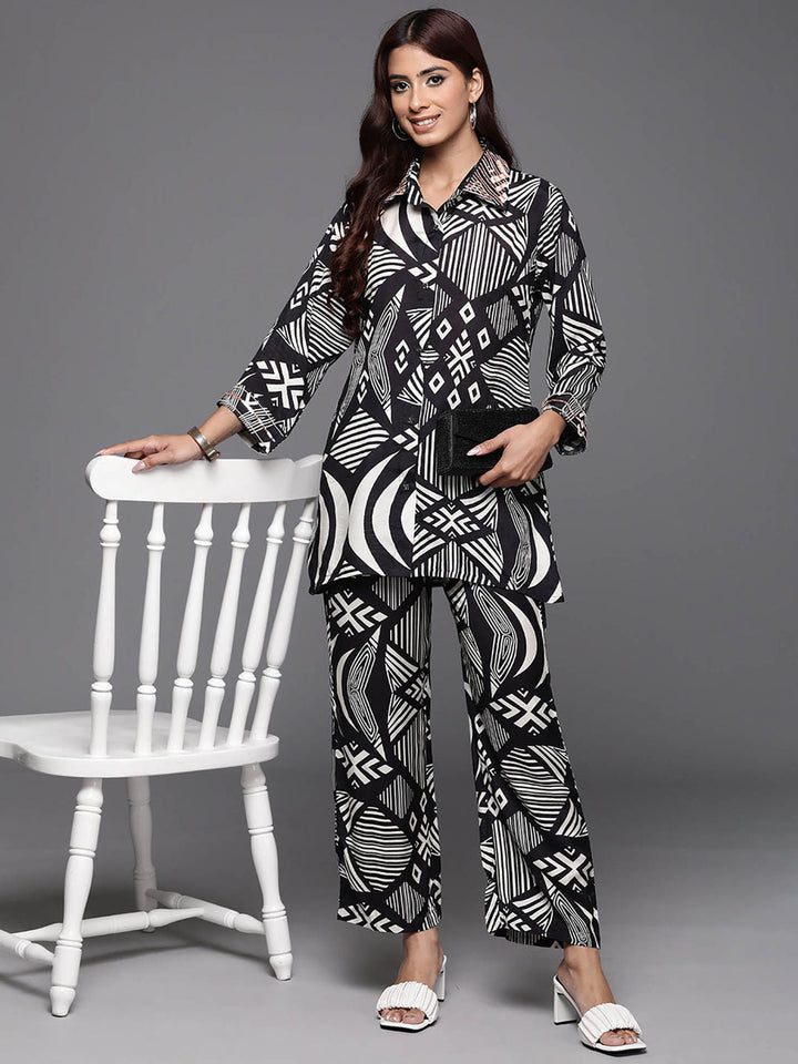 Women Black Geometric Printed Cotton Co-Ord (Set of 2)
