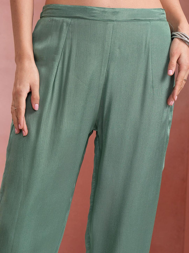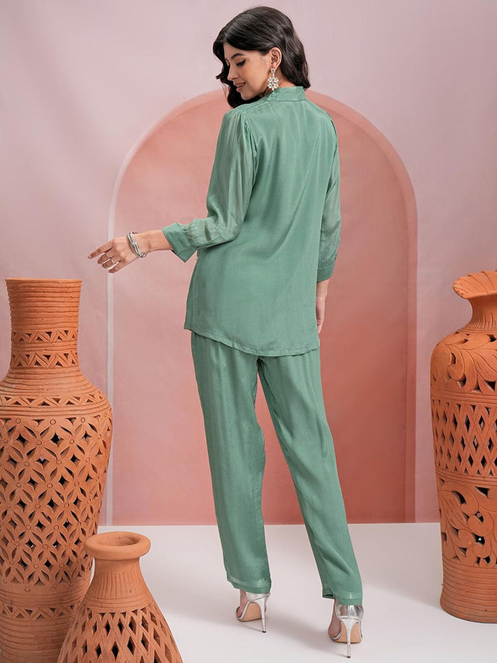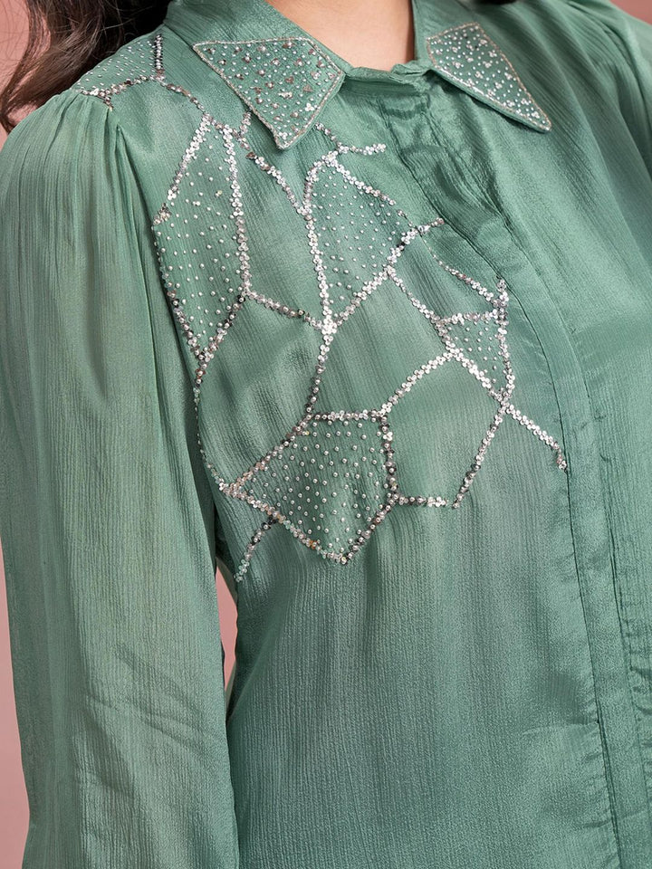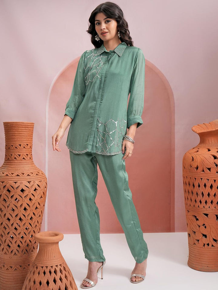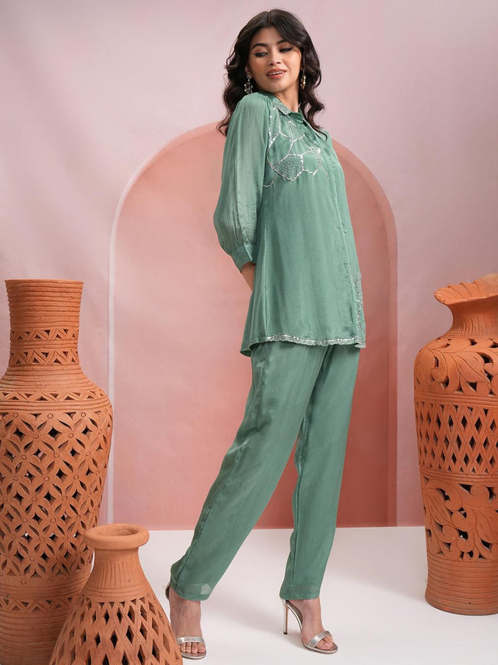Women Green Embellished/Sequined Co-ord (Set of 2)