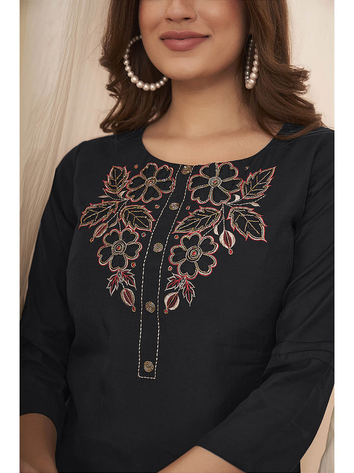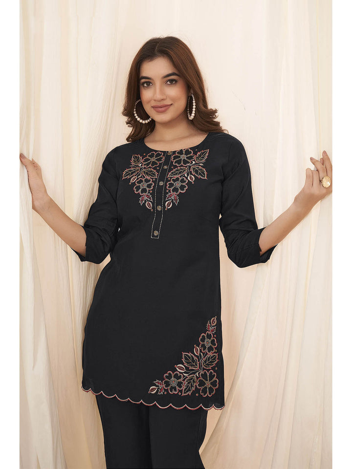 Women Workwear Black Embroidered Silk Co-Ord (Set Of 2)