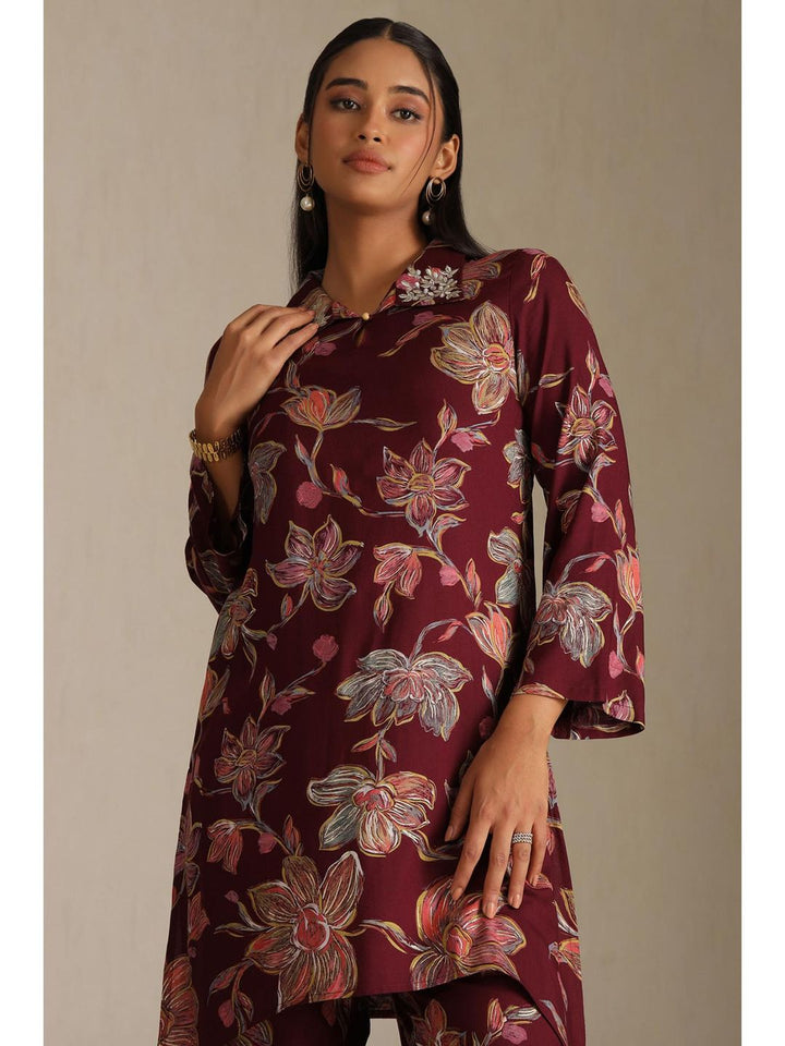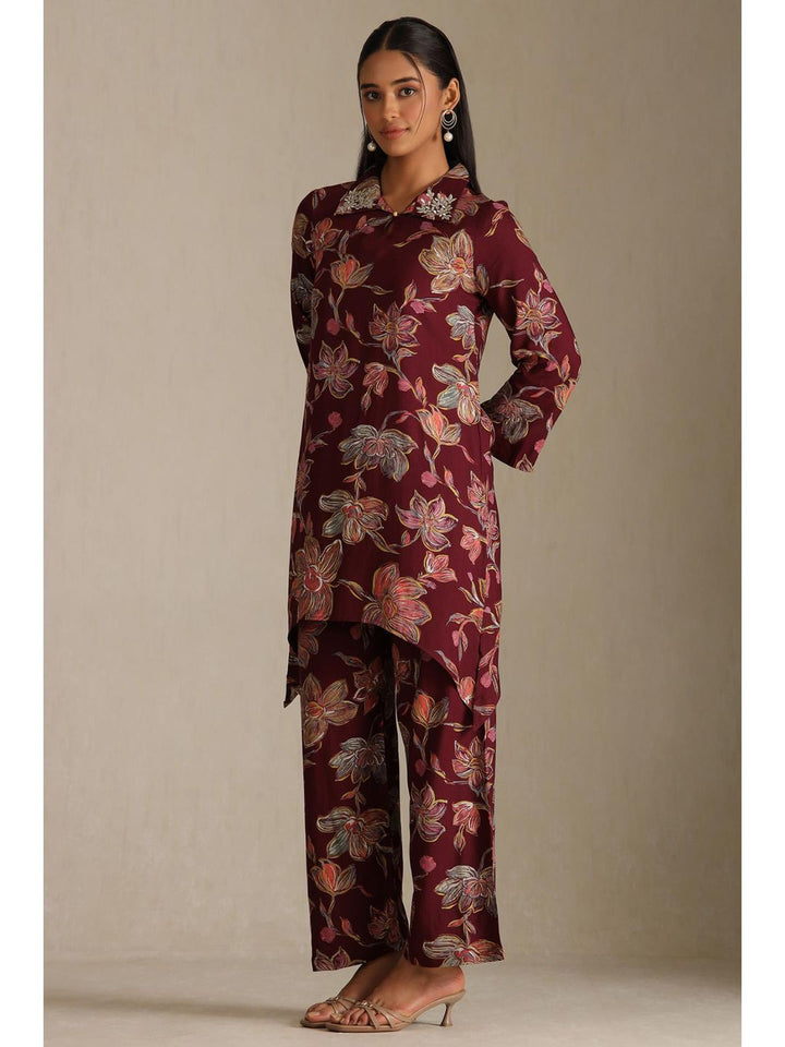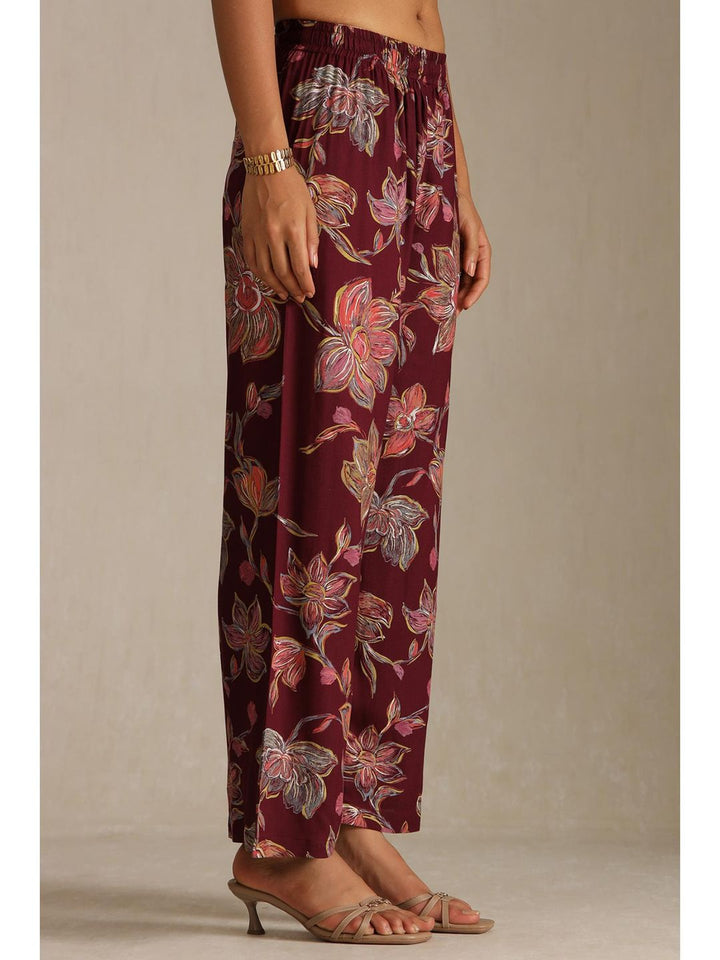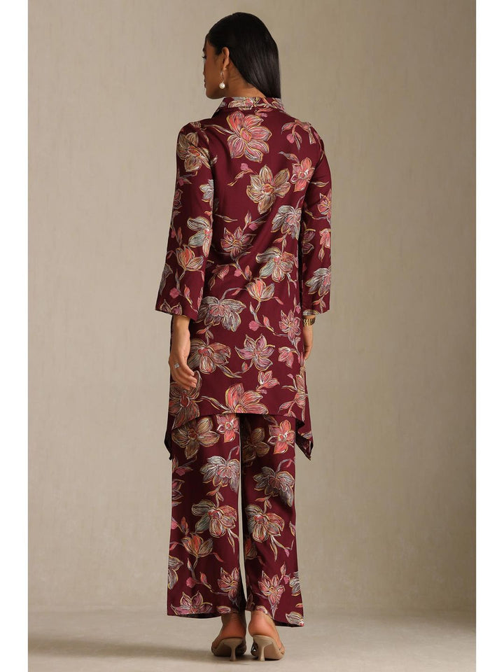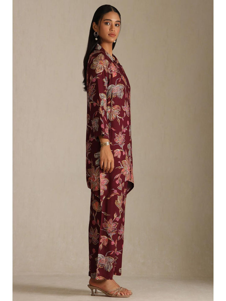 Womens Wine Rayon Floral Print Co-ord (Set of 2)